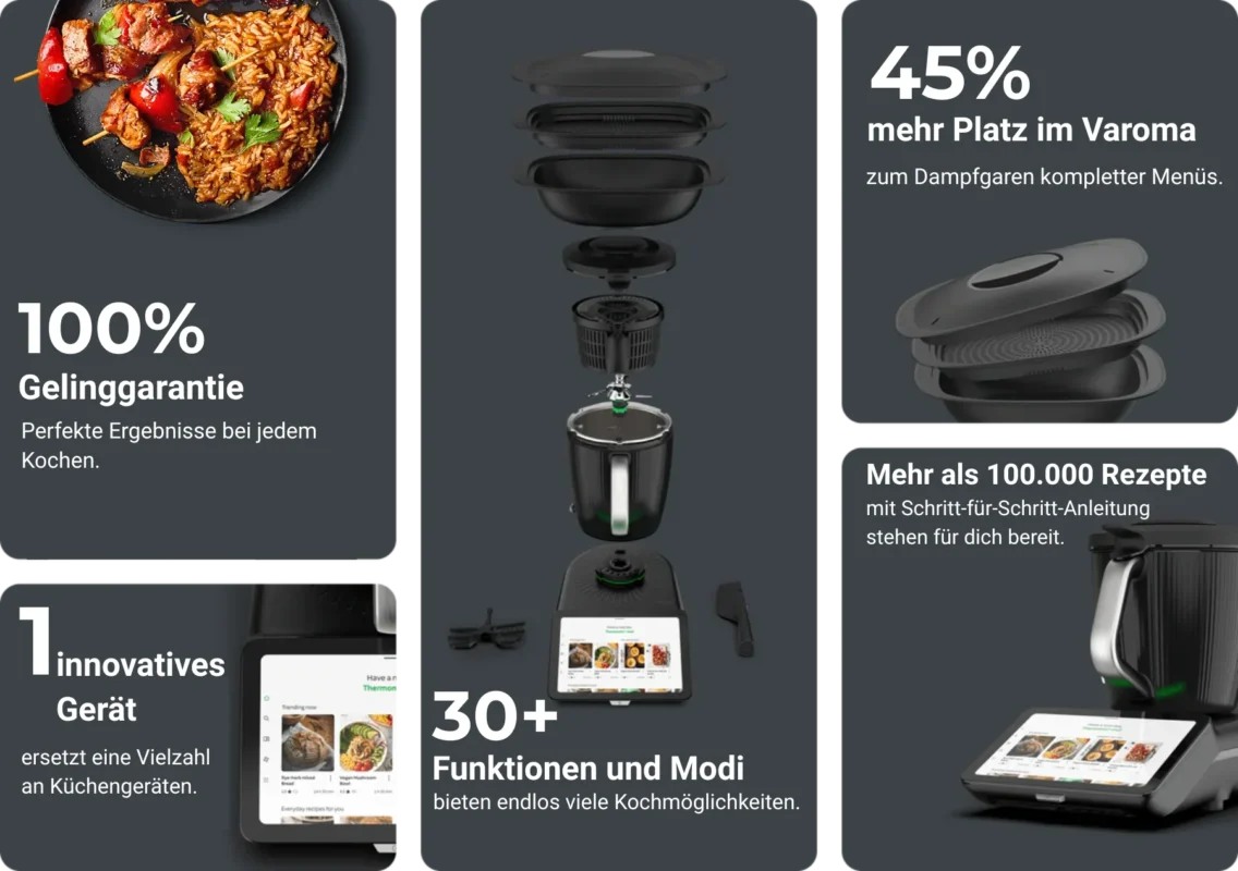 Das innovative Grundgerät mit einem beeindruckenden 10 Zoll Multi-Touch-Display und ein designter Mixtopf sorgen für DEN Hingucker in deiner Küche.
